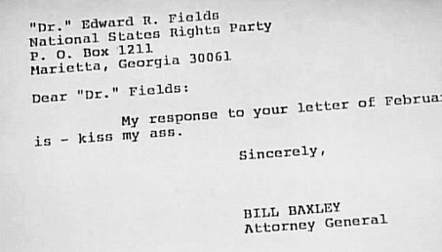 Bill Baxley | Letter to a white supremacist | 28 February, 1976