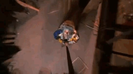 Half-way up the elevator shaft I met the barrel of bricks coming down. The encounter was brief and spirited. I got the worst of it but continued on my way towards the roof—that is, most of me went on, but much of my epidermis clung to the barrel and returned to earth. Then I struck the roof the same time the barrel struck the cellar. The shock knocked the breath out of me and the bottom out of the barrel. Then I was heavier than the empty barrel, and I started down while the barrel started up. We went and met in the middle of our journey, and the barrel uppercut me, pounded my solar plexus, barked my shins, bruised my body, and skinned my face. When we became untangled, I resumed my downward journey and the barrel went higher. I was soon at the bottom. I stopped so suddenly that I lost my presence of mind and let go of the rope. This released the barrel which was at the top of the elevator shaft and it fell five floors and landed squarely on top of me—and it landed hard, too.