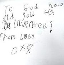 ‘Dear Lulu – Nobody invented me – but lots of people discovered me and were quite surprised. They discovered me when they looked round at the world and thought it was really beautiful or really mysterious and wondered where it came from. They discovered me when they were very very quiet on their own and felt a sort of peace and love they hadn't expected.