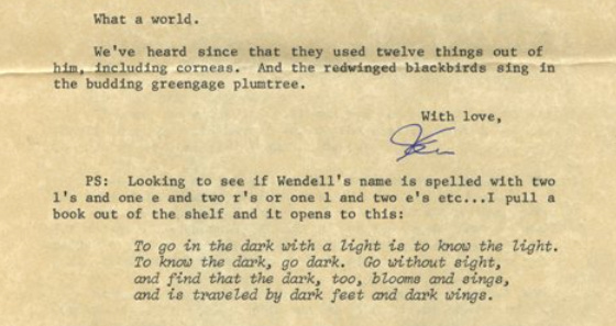 PS: Looking to see if Wendell’s name is spelled with two l’s and one e and two r’s or one l and two e’s etc . . . I pull a book out of the shelf and it opens to this: