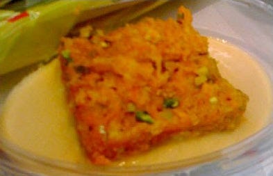 I know it looks like a bhaji but it’s in custard, Richard. Custard. It must be the pudding. Well you’ll be fascinated to hear that it wasn’t custard. It was a sour gel with a clear oil on top. Its only redeeming feature was that it managed to be so alien to my palate that it took away the taste of the curry emanating from our miscellaneous central cuboid of beige matter. Perhaps the meal on the left might be the desert after all.