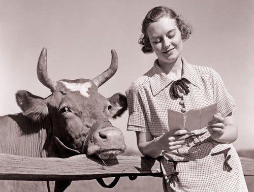 If you haven’t already done so and you can afford it, please consider becoming a paid-up subscriber of this newsletter. “Working” on it is often the highlight of my day and I’d like to continue sending it out for as long as I’m able. I mean, if I have to stop, who else is going to send you letters about cows? Nobody, that’s who. Just look at the archive.